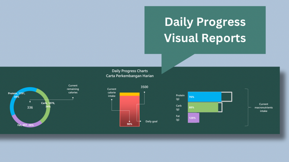 - Daily charts, graphs, and bars update in real-time, showing daily progress