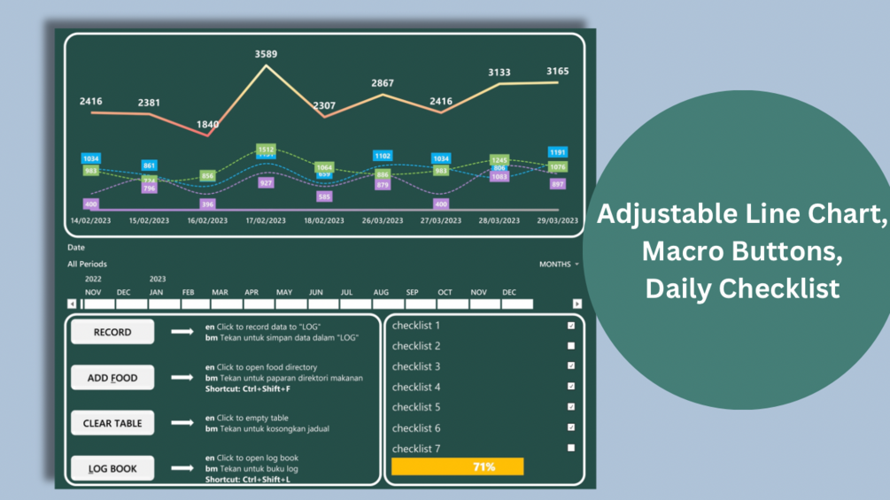 An Excel macro-enabled workbook with advanced functionalities. Strictly for Windows only. This workbook is not compatible with Excel on Mac as it contains VBA features, form controls, and ActiveX that are not supported on Mac. Macros in this workbook are vital for automating data-processing functions, repetitive words, and generating graphs and charts.